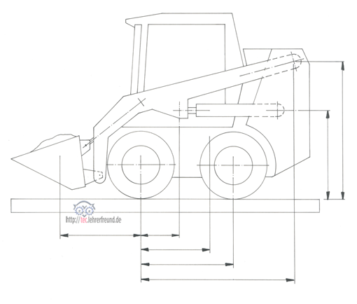 Am Hubarm eines Kompaktladers wirken drei Kräfte. Zwei davon sind nicht bekannt; sie wollen wir zeichnerisch ermitteln.