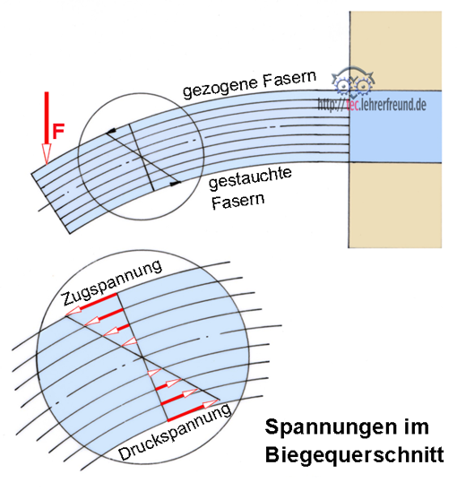 Zur Biegebeanspruchung liest man im tec.LEHRERFREUND-Beitrag Biegefestigkeit: