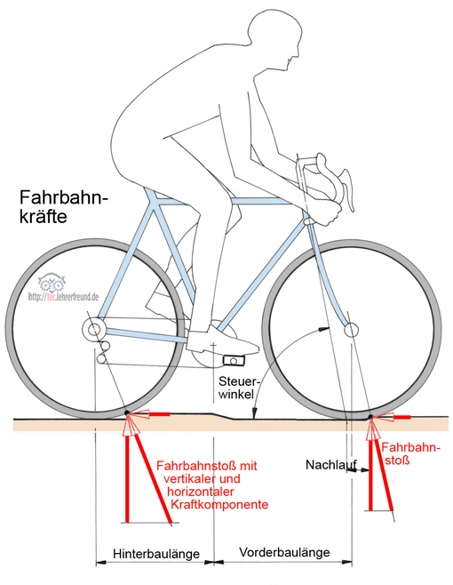 Beim Überfahren von Unebenheiten entstehen Fahrbahnstöße auf die Laufräder und Ausfallenden; sie äußern sich als mehr oder weniger vertikale Kräfte.