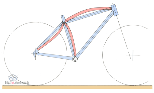 Der Fahrradrahmen muss Kräfte aufnehmen, die sich aus dem Fahrergewicht, dem Treten und durch Fahrbahnstöße ergeben. Aus Versuchen kennt man die zulässigen Lasten, die - wenn man sie nicht überschreitet - kaum zu Rahmenverformungen oder Brüchen führen.