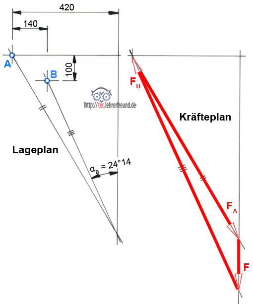 5. Ermitteln Sie zeichnerisch die Kräfte F und FA.