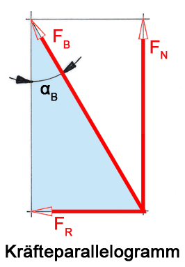 αB –> tan αB = FR : FN = 850 N : 1889 N = 0,45 –>