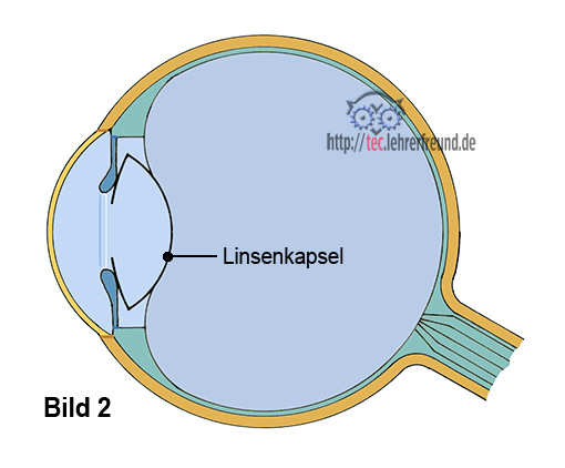 Linse: Sie ist eine gallertartige Form und liegt, von der Linsenkapsel umgeben, zwischen Iris und Glaskörper.