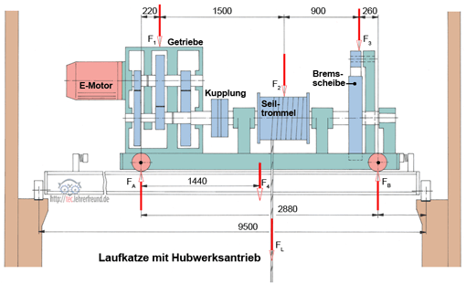 2. Belastung der Laufkatze: siehe Skizze
