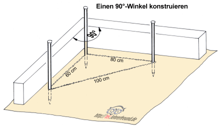 Das oben erwähnte 3 : 4 : 5 m-Dreieck lässt sich auch im täglichen Leben verwerten. Oft benötigt man z. B. im Freien rechte Winkel, sei es beim Bau eines Gartenhauses, bei der Anlage eines Zauns, eines Komposts, usw. Man schlägt zwei Eisenstäbe im Abstand von 3 m (oder Bruchteilen davon) entlang der gewünschten Grenze ein und legt über sie eine 12 m (= 3 m + 4 m + 5 m) lange zusammengeknotete Schnur. Wird der zweite Pfosten im Abstand von 4 m (oder Bruchteilen davon) bei gespannter Schnur eingeschlagen, ergibt sich ein einwandfreier rechter Winkel.