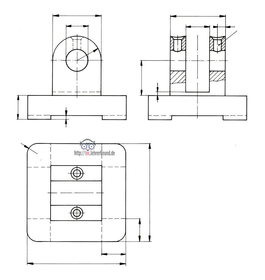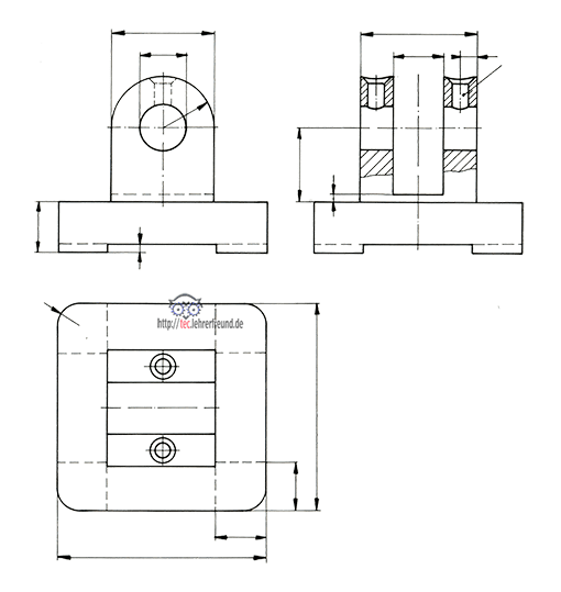 Stellen Sie eine Fertigungszeichnung des Bauteils in den erforderlichen Ansichten her. Angaben dazu: