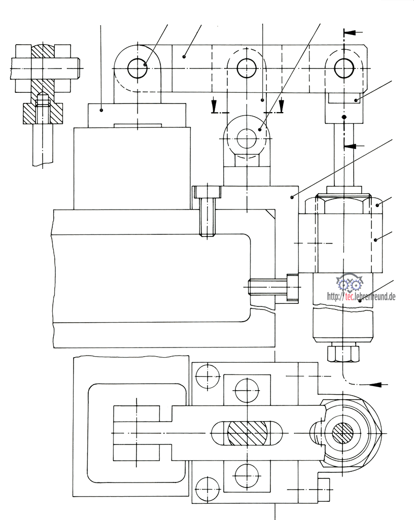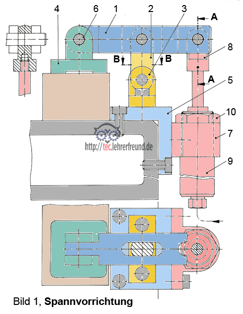 Wir stellen als Lern- und Übungsprojekt eine Spannvorrichtung vor. Übungsthemen sind Aufgaben zur Bewegungsfunktion, zum Technischen Zeichnen und zur Technischen Mathematik.