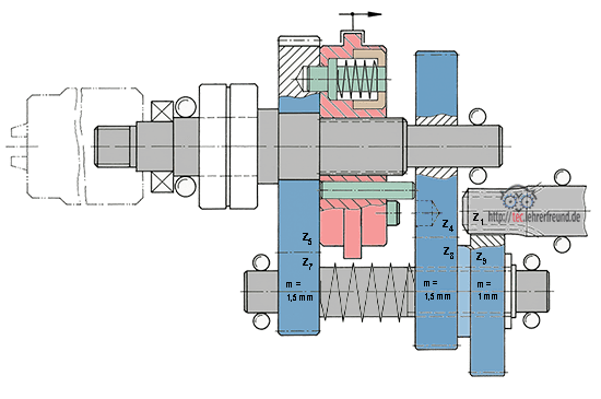 Die Räder 8 - 4 und 7- 5  sind mit m = 1,5 mm verzahnt.