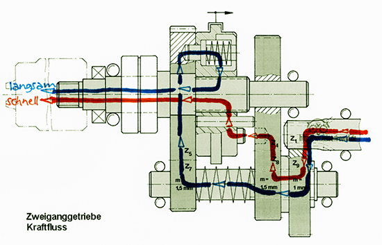 Zweiganggetriebe, Kraftfluss im langsamen und schnellen Gang
