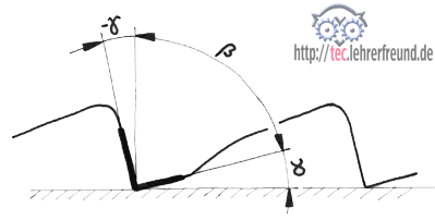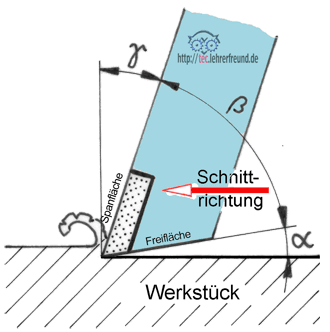 Bearbeitet man Werkstoffe mit einem Keil, hebt also Späne ab, sollte dieser so gestaltet und angesetzt werden, dass das Spanen unter den besten Bedingungen vor sich gehen kann. Man hat dafür die drei Winkel α, β und γ festgelegt, die zusammen 90° ergeben.