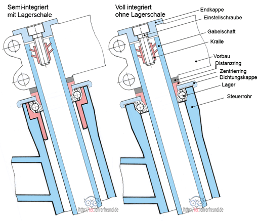 Es benützt ebenfalls Lagerschalen, die im Inneren des Steuerrohrs liegen.