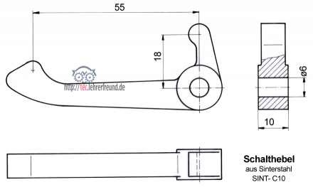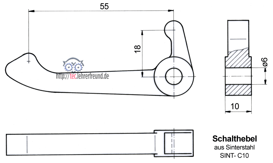 - am Lagerauge: Die Breite 10 mm soll zusammen mit der Mitnehmerbuchse-Nute eine Spielpassung ergeben