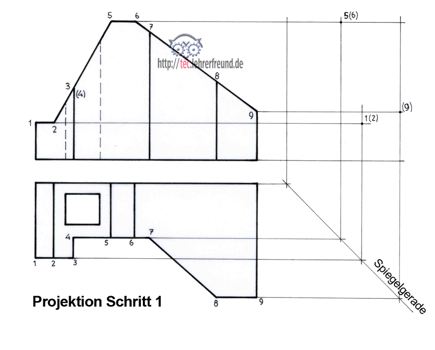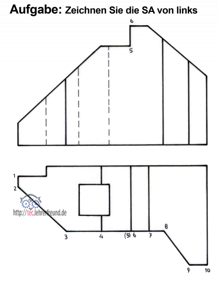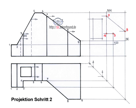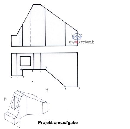 Das Projizieren von Ansichten und das Lösen einer Mathematikaufgabe sind für das Denken nicht weit voneinander entfernte Vorgänge. Der tec.LEHRERFREUND zeigt ein weitere Projektionsübung an einem prismatischen Körper. Eine perspektivische Darstellung des Körpers soll uns das Leben ein bisschen erleichtern.