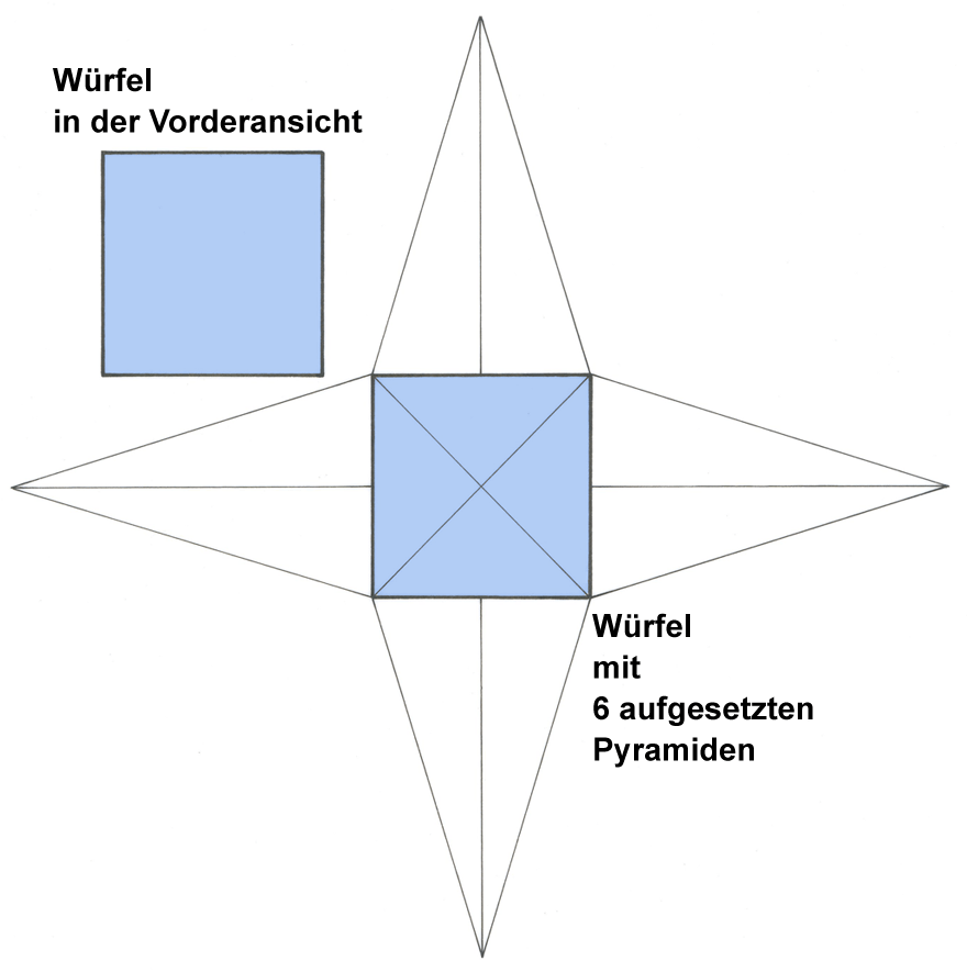 B: Wir müssen ja 26 Sternstrahlen unterbringen. Dafür brauchen wir auf dem Würfel 26 Flächen.