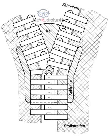 Schemazeichnung: Reißverschluss (Ausschnitt)