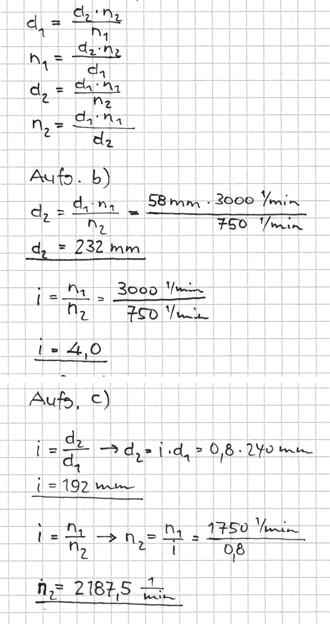 Riementrieb Aufgabe b) muss es heißen berechnen Sie d2 und i :)