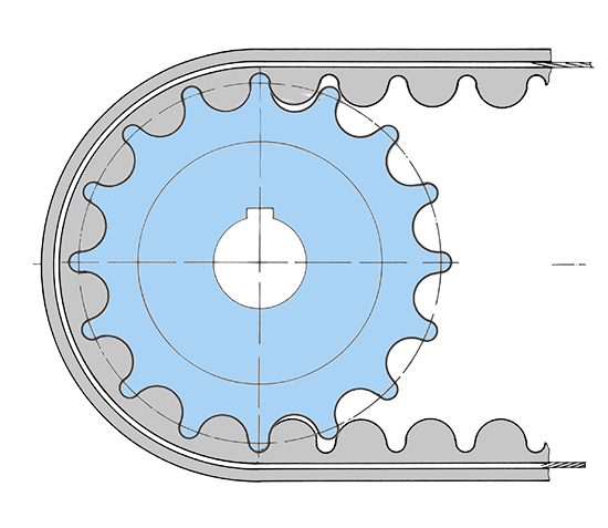 - vergrößern den Umschlingungswinkel; dadurch übertragen sie höhere Leistungen oder ermöglichen kleinere Bauteile