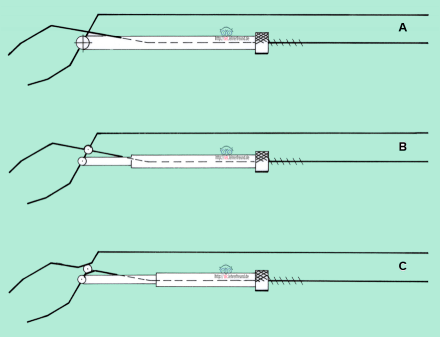 1. Die Rohrzange ist hier vereinfacht in drei Prinzipskizzen A, B und C dargestellt. Nur eine davon ist korrekt. Welche? Rahme sie ein.
