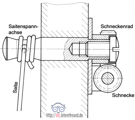 Saitenspanneinrichtung / Schneckentrieb (Ausschnitt)