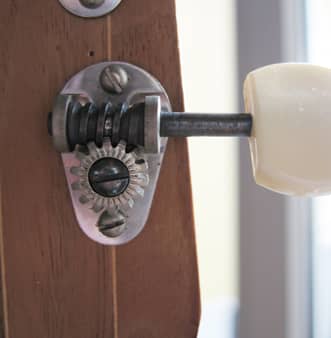 Saitenspanneinrichtung an einer Fidel (Schneckentrieb)