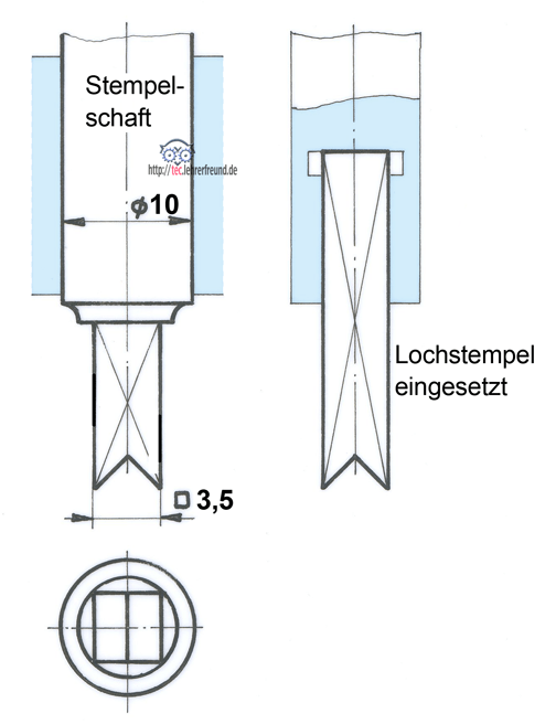 Den Stempelschaft zylindrisch lassen und den eigentlichen quadratischen Lochstempel anfräsen.