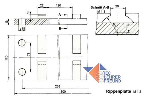 Rippenplatte (im Maßstab 1: 2 zeichnen)
