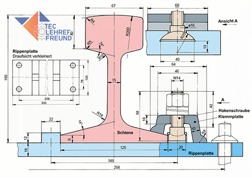 Im vorausgegangenen Beitrag »Schienenbefestigungen (3)« stellten wir die Entwurfszeichnung einer Schienenbefestigung vor. Die Schiene und die dort vorgezeichneten Bauteile Klemmplatte, Rippenplatte und Hakenschraube sollen gezeichnet werden.