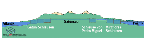 Mit rund 300 Metern Länge und knapp 35 Metern Breite gehören die Schleusen des Panamakanals zu den größten Betonbauwerken der damaligen Zeit. Die Gatún-Schleusen heben den Wasserspiegel in drei aufeinanderfolgenden Kammern um insgesamt knapp 26 Meter. Dann ist das Niveau des Gatún-Sees erreicht. Der See entstand beim Aufstauen des Rio Chagres durch den Gatún-Damm, der an die Schleusen angrenzt.