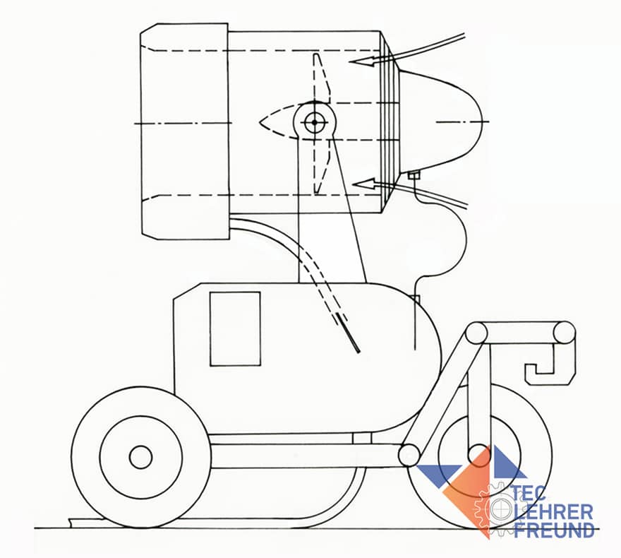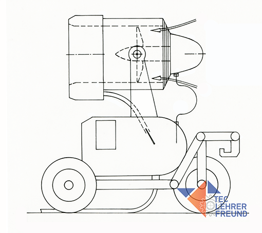 Der Unterbau der Schneekanone mit fahrbarem Chassis nimmt die Anschlüsse für Wasser und Strom auf und beherbergt den Kompressor und das Steuergerät.