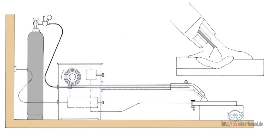 Ein Problem beim Lichtbogenschweißen: Bei den hohen Temperaturen reagieren Sauerstoff und Stickstoff aus der Umgebungsluft mit dem Schweißgut und vermindern dadurch die Qualität der Schweißnaht. Um solche Einflüsse auszuschalten, schirmt man beim Schutzgasschweißen die Schweißstelle mit einem mit Metallen nicht reagierenden Schutzgas ab.