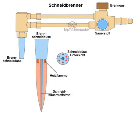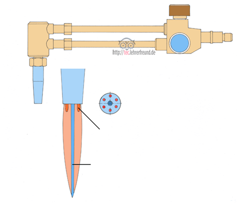 - Der Werkstoff muss im Sauerstoffstrom verbrennbar sein.