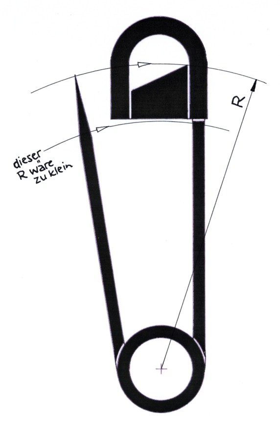 c) Die Sicherheitsnadel ist geschlossen. Prüfe mit dem Zirkel nach, ob die Nadelspitze tief genug im Schließblech sitzt.