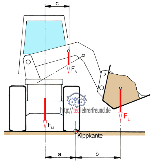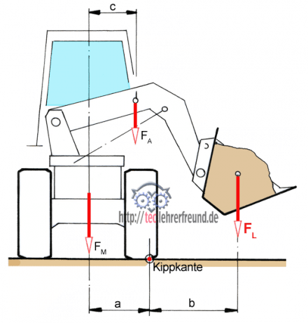 (Berichtigung: c ist – anders als in der Skizze – der Abstand zwischen Kippkante und FA)
