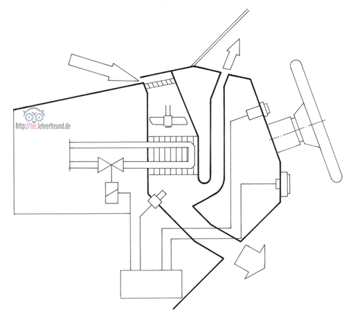 Beim Regeln dagegen liegt ein »geschlossener« Wirkungsablauf vor, der sich als Kreis zeichnen lässt. Hier stellt der Vergleich zwischen Soll- und Istwert eine Verknüpfung dar, die es nicht zulässt, dass der Sollwert über eine zulässige Toleranz hinaus unter- oder überschritten wird. Es leuchtet ein, dass man für einen solchen Regelvorgang zwei weitere Einrichtungen benötigt: ein geeignetes Messinstrument, allgemein einen Messfühler, und einen Regler, der Ist- und Sollwert einander angleicht. Messfühler und Regler zusammen werden als Messumformer bezeichnet. Die Steuerstrecke wird zur Regelstrecke.