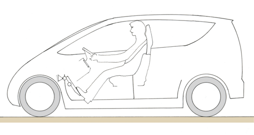 Nachdem der Motor angelassen, die Kupplung gelöst und ein Gang eingelegt ist, wird das Gaspedal gedrückt: Das Auto fährt und der Fahrer richtet seinen Blick auf die Straße.