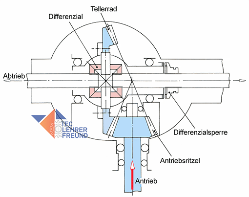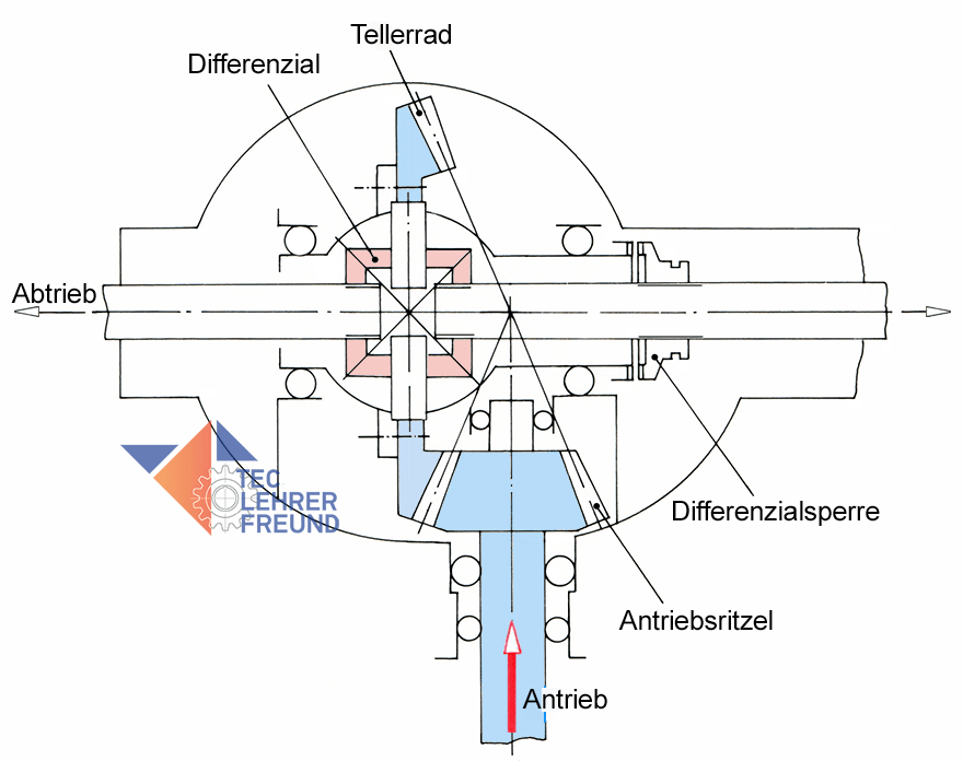 Die Darstellung hilft, die Funktion des Achsantriebs zu verstehen. Um eine Vereinfachung zu erreichen, darf man