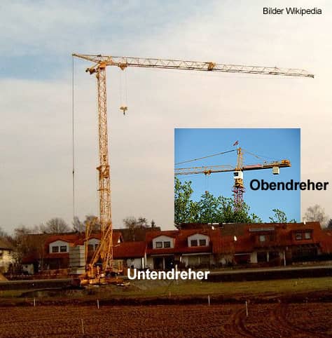 Bei großen Turmhöhen und Lastmomenten ist das Untendrehersystem ungeeignet. Bei Drehbewegungen mit angehängter Last entstehen am Kranturm unzulässig hohe Verwindungskräfte.