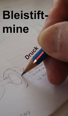 Wenn du mit einem Bleistift schreibst, dann übst du eine Druckkraft auf die Mine aus. Drückst du zu stark, dann zersplittert die spröde Grafitmine, oder sie reißt ein Loch ins Papier.