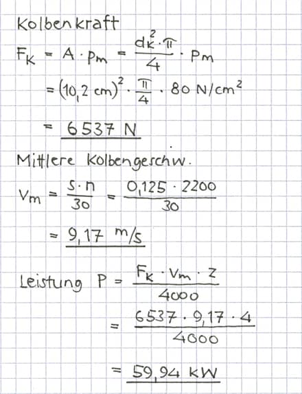 P = FK • s : t   = FK • vm  (FK = Kolbenkraft; vm = mittlere Kolbengeschwindigkeit in m/s)