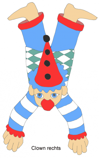Drucke die Zeichnungen unten (Clown links und Clown rechts) aus.