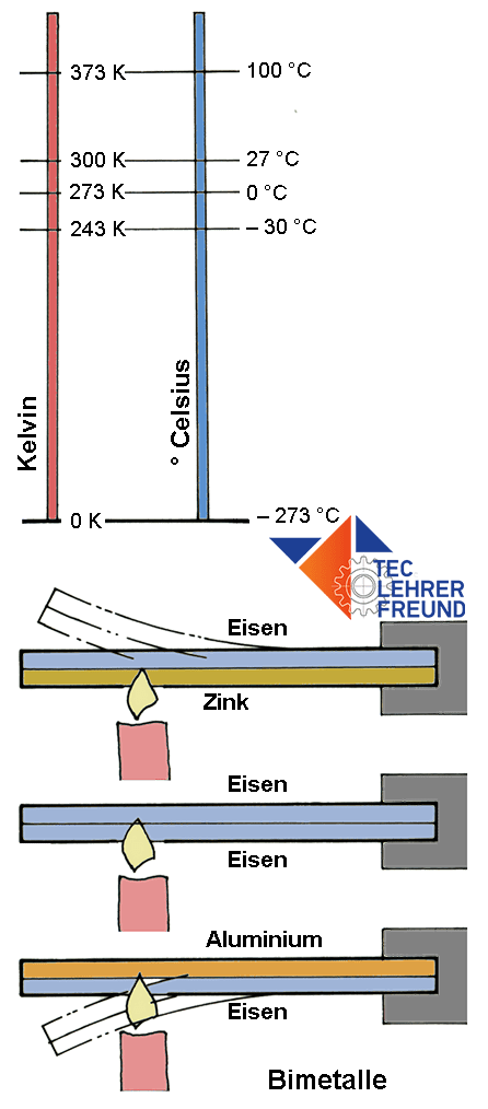 Schemaskizze Kelvin, Celsius, Bimetalle