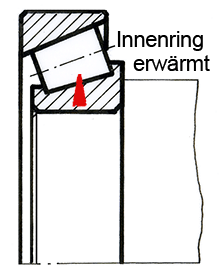 Bei der Erwärmung eines Wälzlagers, dehnt sich dieses aus, die Bohrung wird größer und der Lagerzapfen kann leichter montiert werden.