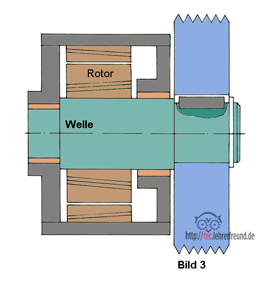 2. Die Welle treibt den mit Spulen besetzten Rotor an, wozu ein Drehmoment erforderlich ist.