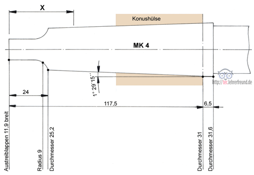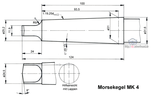 Morsekegel MK 4; die Ansicht ist unvollständig.