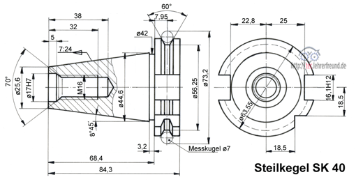 a) Zeichnen Sie den SK 40 vollständig in zwei Ansichten.