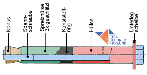 Der Schwerlastdübel besteht aus 6 Teilen