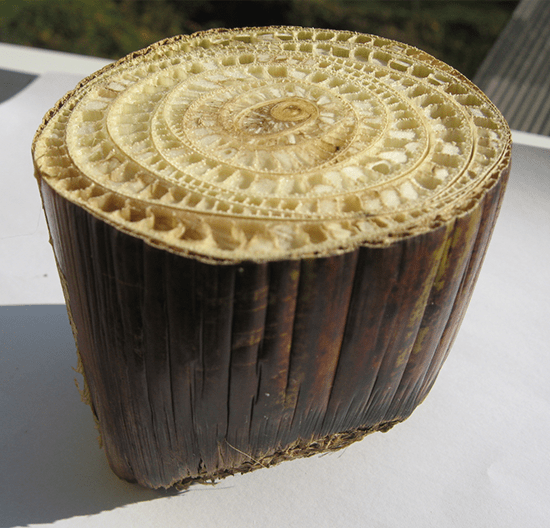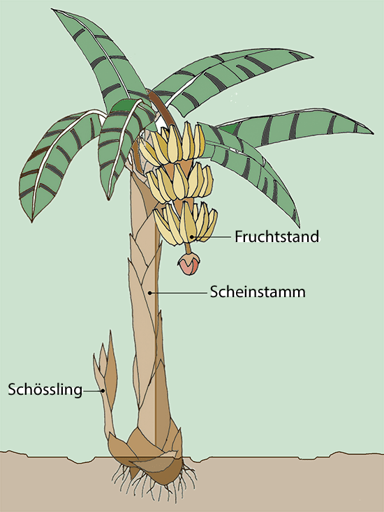 Wir wissen kaum etwas über das Geheimnis des kunstvoll geformten Querschnitts eines Bananenstamms, außer dass es ein Thema für Bionikfans sein könnte. Vielleicht kennen sich unsere Leser darin aus. Schreiben Sie uns, wenn Sie über das Innenleben des Bananenstamms mehr wissen.